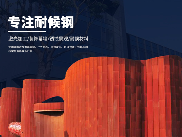 耐候鋼表面是一層銹紅色的物質(zhì),摸上去十分粗糙,質(zhì)感十分特殊。由于耐候鋼表面形成的特殊致密氧化層具有穩(wěn)定、均勻的自然銹紅色,這使它成為一種有吸引力的建筑景觀用材料...