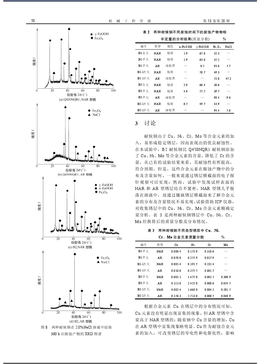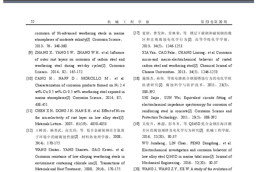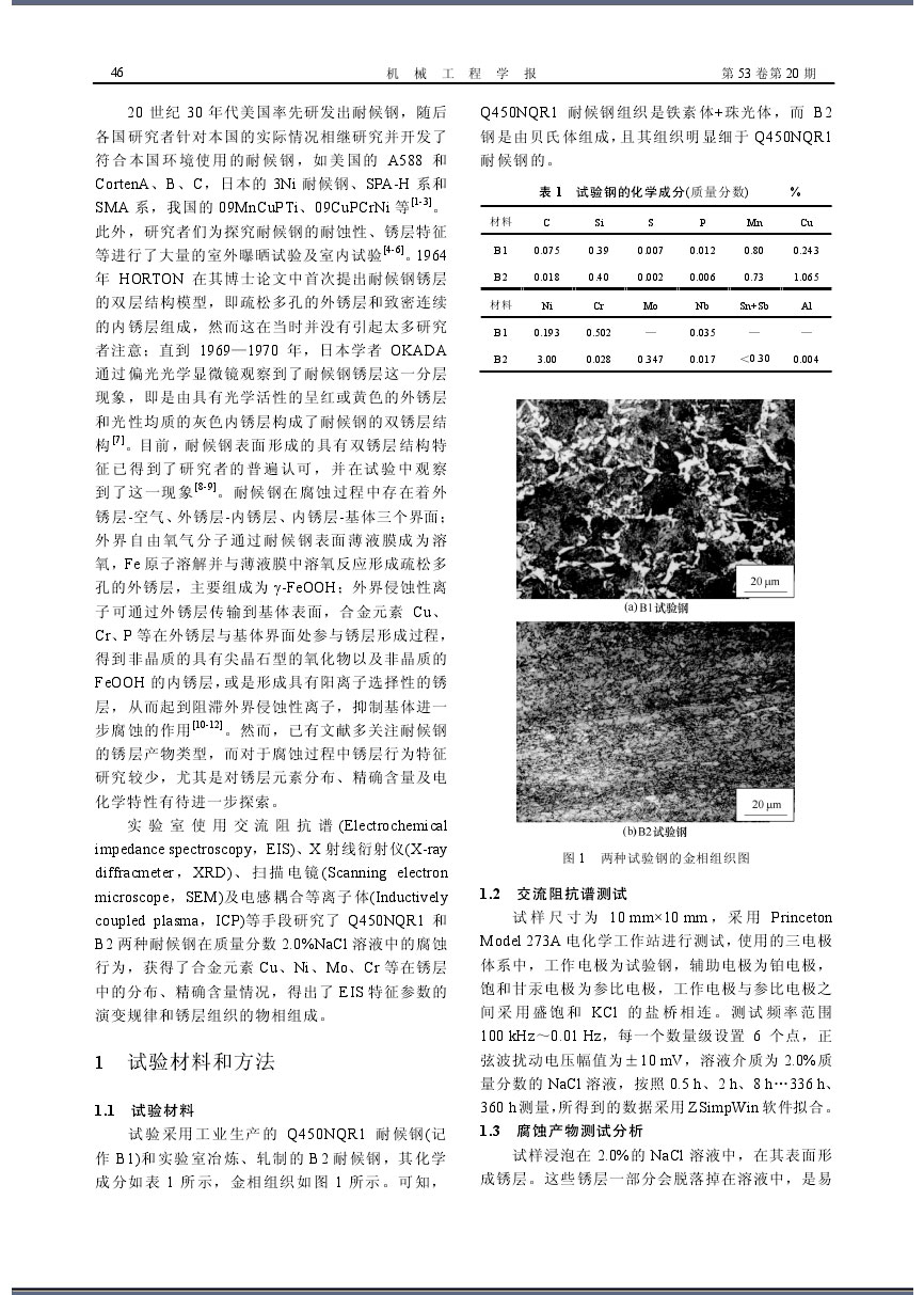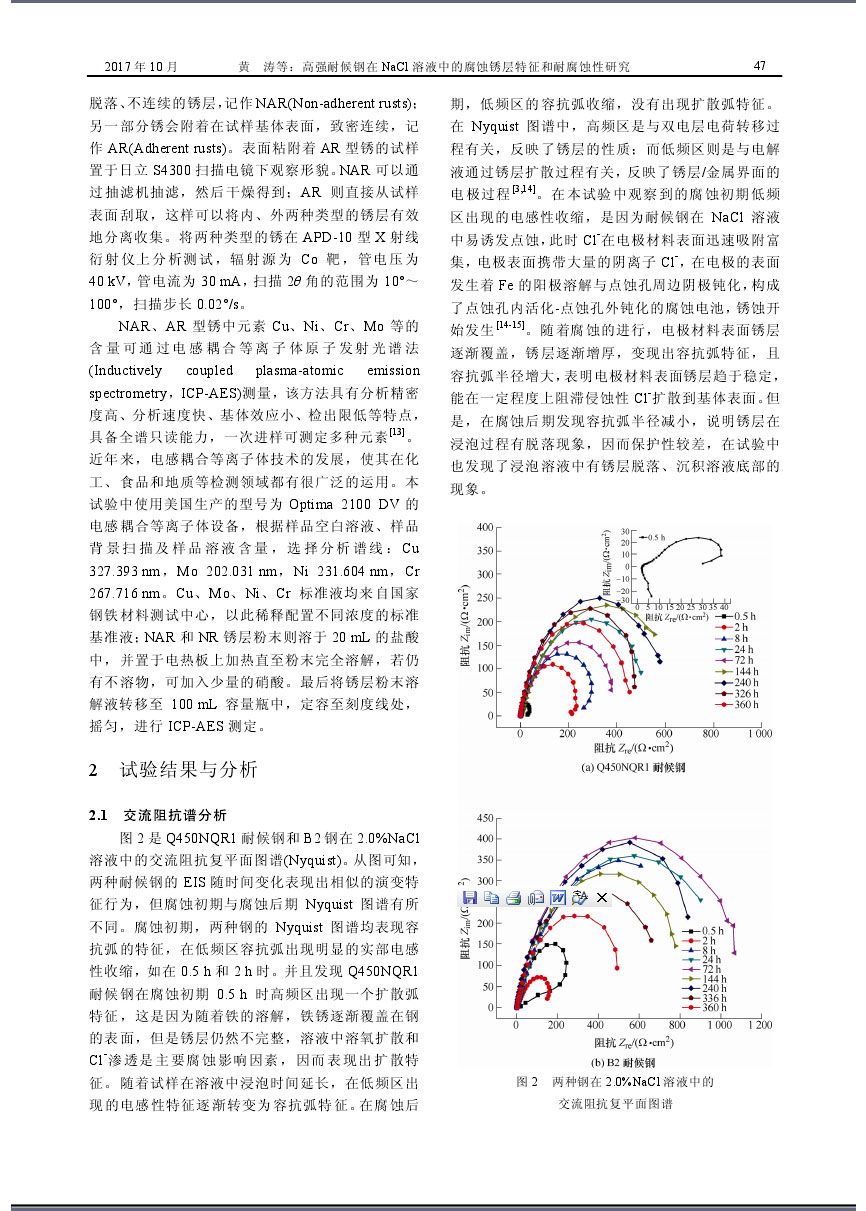 高強耐候鋼在NaCl溶液中的腐蝕銹層特征和耐腐蝕性研究