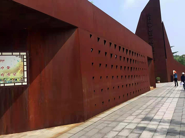 還可用活性水快速冷卻。耐候鋼板在現(xiàn)象設(shè)計(jì)中也常常起到封閉植物空間的作用,常用作植物栽培槽、樹(shù)塘裝飾、臺(tái)面植物切割板、植物景觀墻。用平板法將耐候鋼板按樹(shù)木、灌木、地被植物水平加工成各種中空、透明或閉合結(jié)構(gòu),在植物冠下形成開(kāi)放、半開(kāi)放的視覺(jué)透明空間或封閉空間。生銹的紅色與植物綠色形成紋理和顏色對(duì)比。同時(shí),兩種顏色的變化也會(huì)隨著環(huán)境和氣候的變化而變化,在現(xiàn)象空間中形成和諧組合。